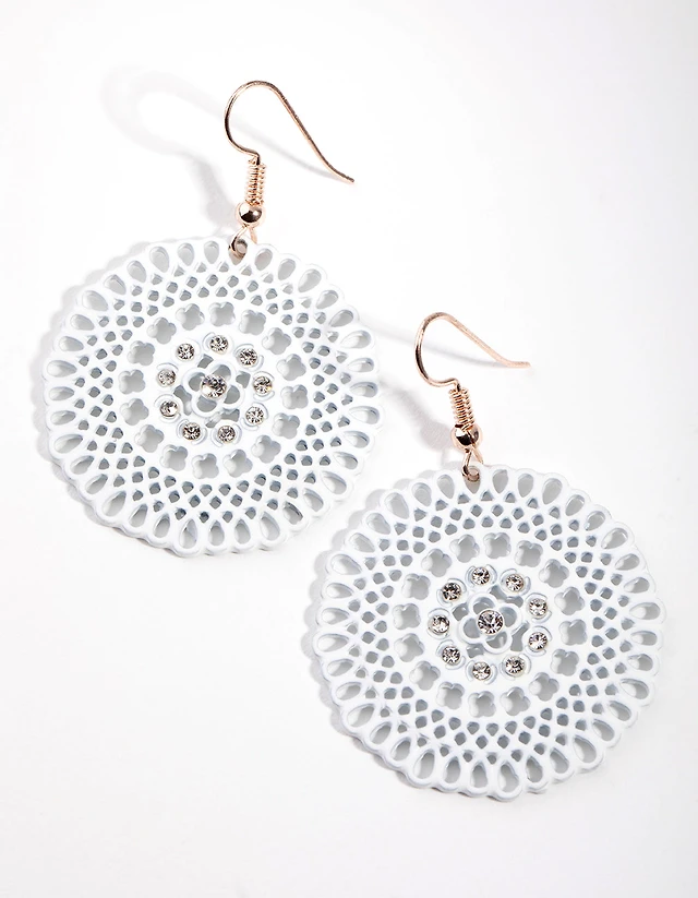 Gold White Coated Metal Bow Drop Heart Stud Earrings