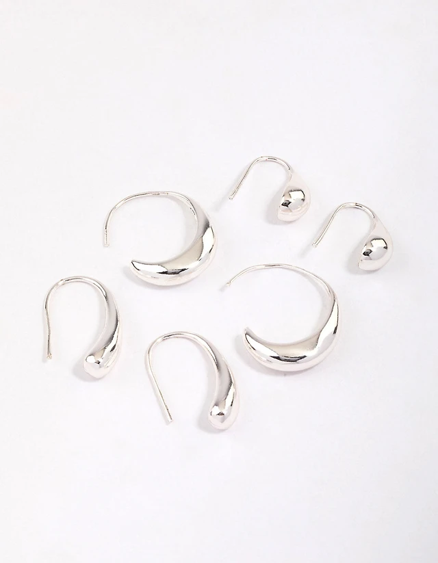 Silver Teardrop Hoop Earrings Pack