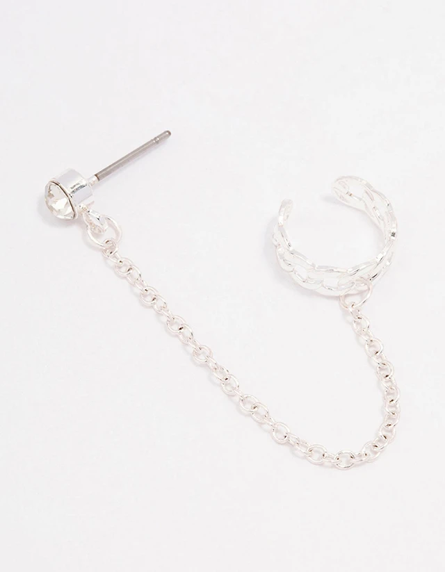 Gold Plated Brass Cubic Zirconia Chain Earrings & Ear Cuffs 3-Pack