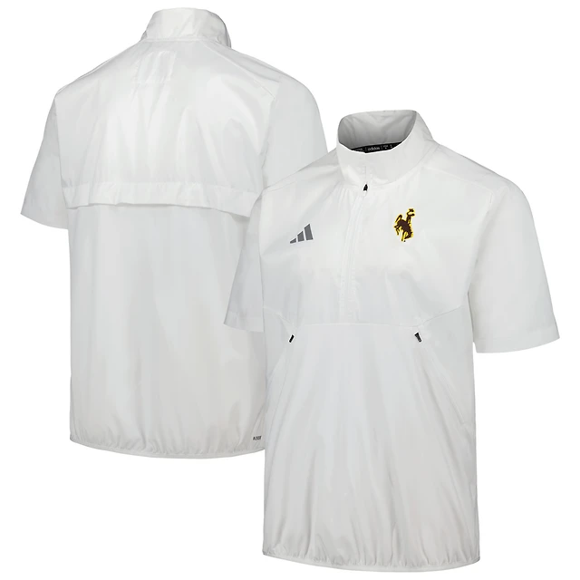 Men's adidas White Wyoming Cowboys Sideline AEROREADY Raglan Short Sleeve Quarter-Zip Jacket