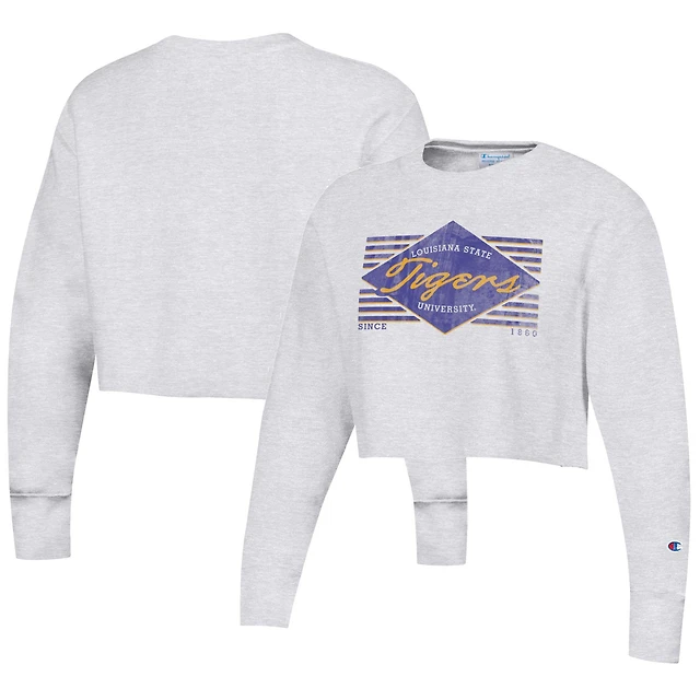 Women's Champion Heather Gray LSU Tigers Reverse Weave Cropped Pullover Sweatshirt
