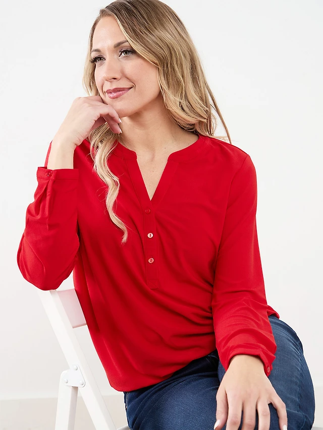 Elegant Button-Up Tie-Front Blouse with Adjustable Sleeves & Collar by Froccella