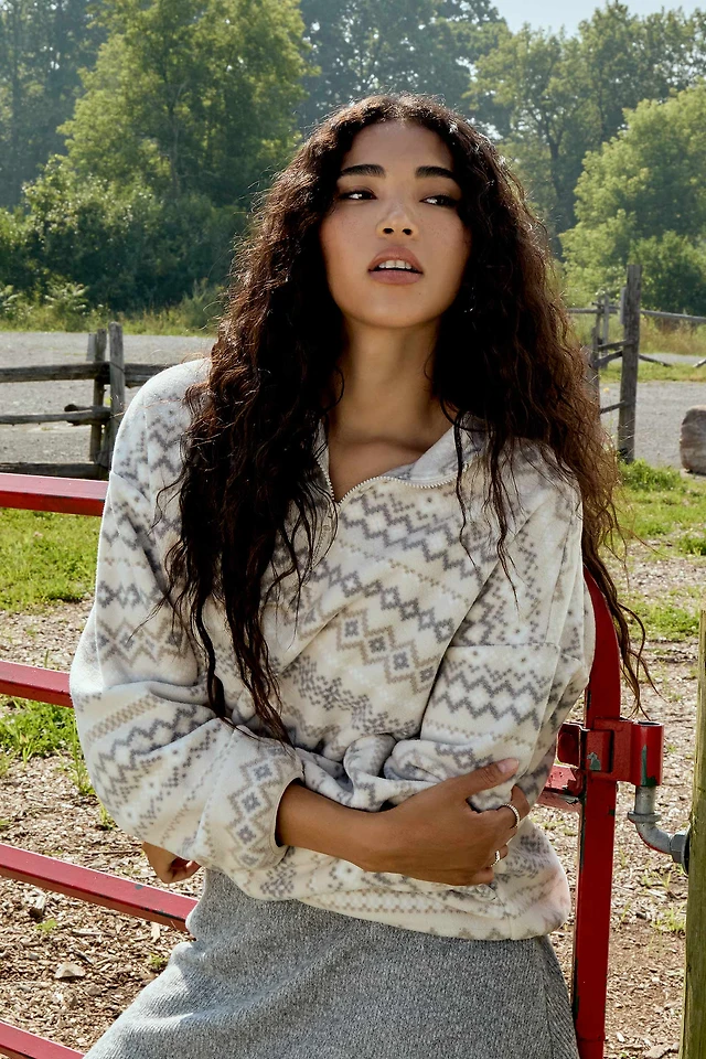 Ardene Polar Fleece 1/4 Zip Sweatshirt in Off-White | Size | Polyester | Eco-Conscious