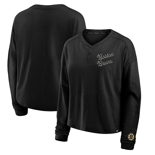 Women's Fanatics Black Boston Bruins Oversized All Out Effort Long Sleeve Henley T-Shirt