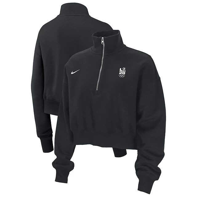 Women's Nike Black LA28 Summer Olympics Phoenix Oversized Fleece Half-Zip Cropped Sweatshirt