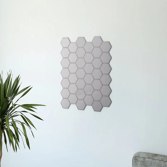 Sarti Hexagon Metal Frame Mirror, 28" - Silver