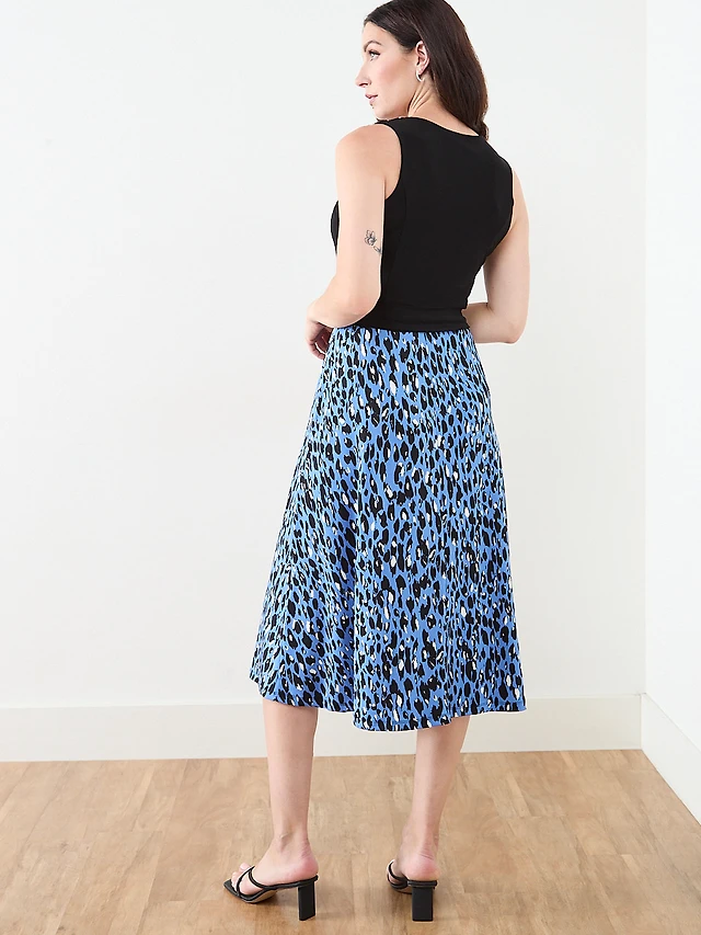 Flowing Abstract Printed Retro Midi Dress with Cap Sleeves & Belt by Point Zero