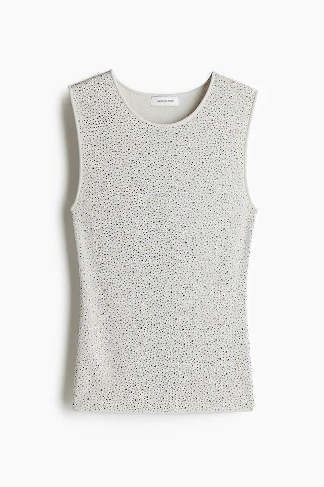 Embellished Sleeveless Top & Rhinestone Slit Pants