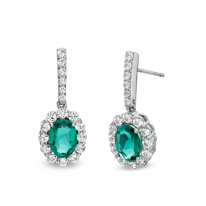 Pear-Shaped Blue and White Lab-Created Sapphire Frame Drop Earrings in 10K White Gold