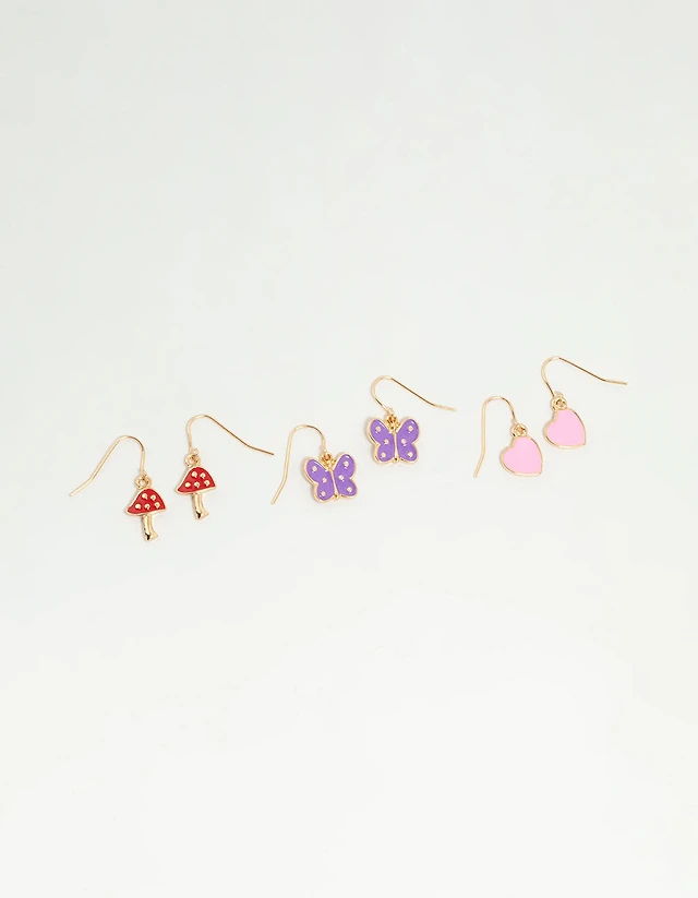 Gold Diamante & Black Bow Drop Earrings 3-Pack