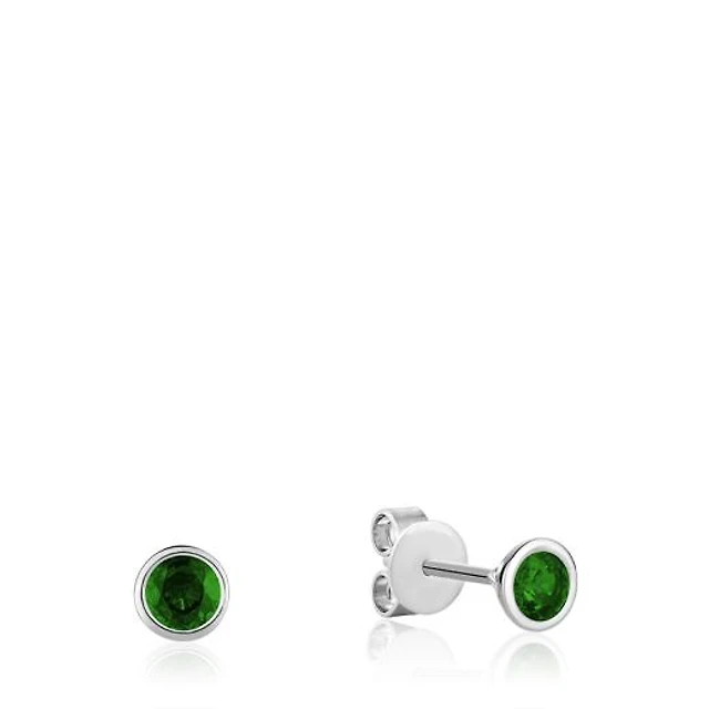 3.5mm Lab-Created Emerald and White Sapphire Swirl Frame Stud Earrings in 10K White Gold