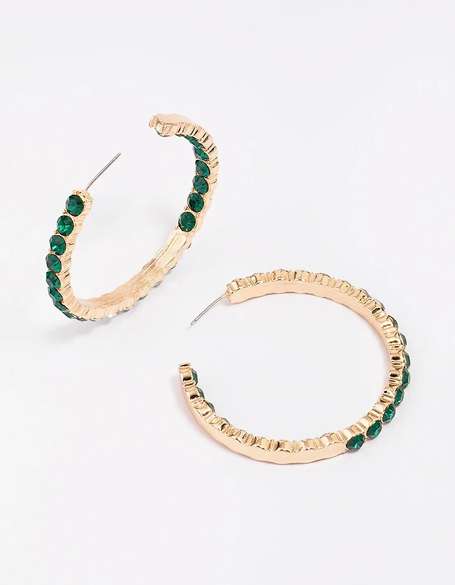 Gold Plated Emerald Round & Baguette Large Hoop Earrings