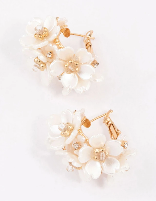 Gold Multicoloured Resin Beaded Hoop Earrings