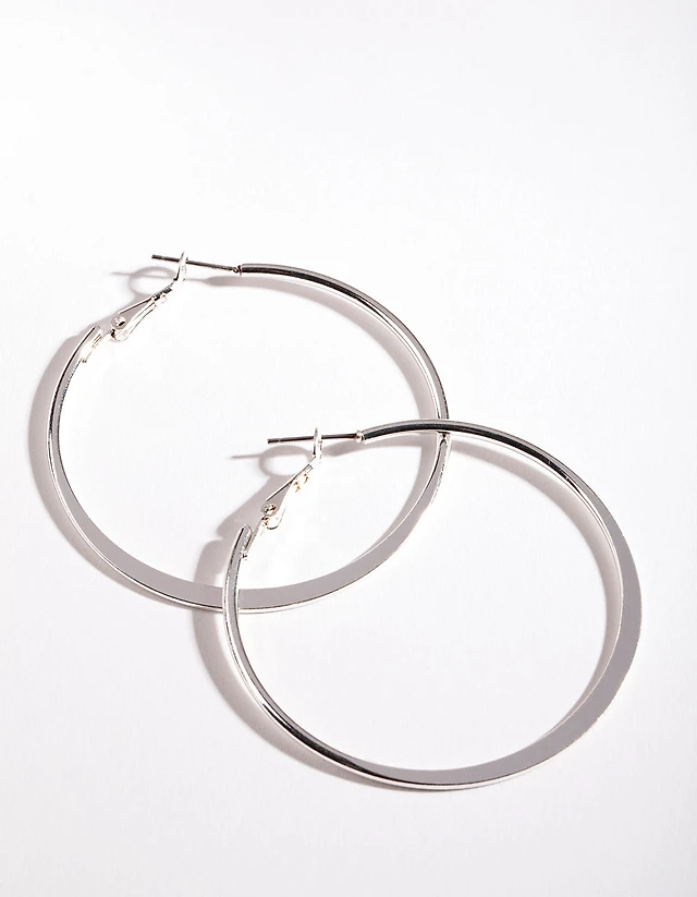 Silver Flat Edge 7cm Hoop Earrings