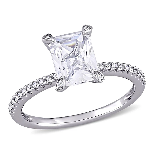 Lab-Created White Sapphire Three Stone Engagement Ring 10K Gold
