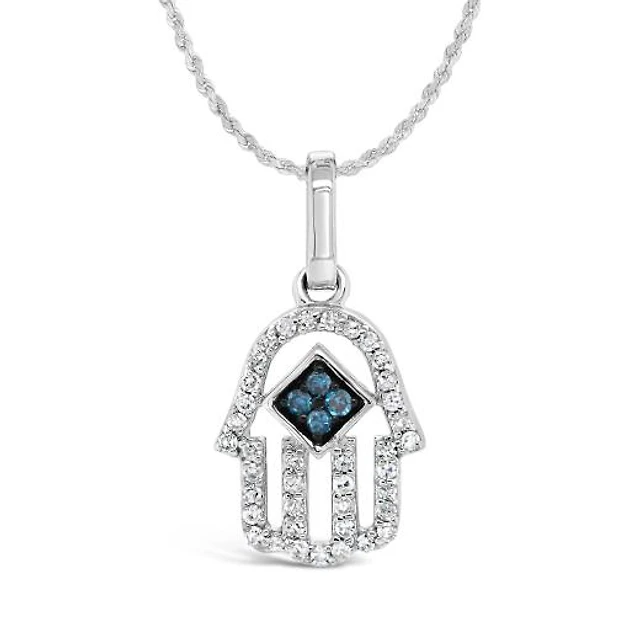 6.0mm Blue and White Lab-Created Sapphire Star of David Pendant in Sterling Silver
