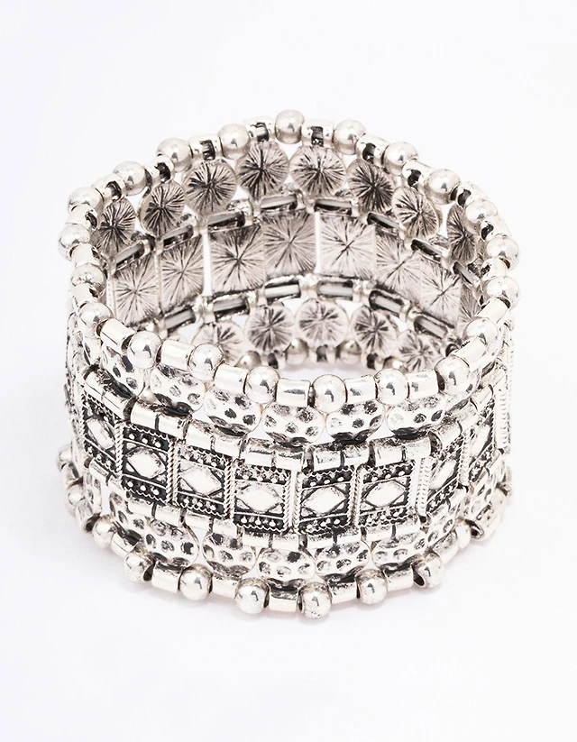 Antique Silver Turquoise Heart Charm Stretch Bracelet