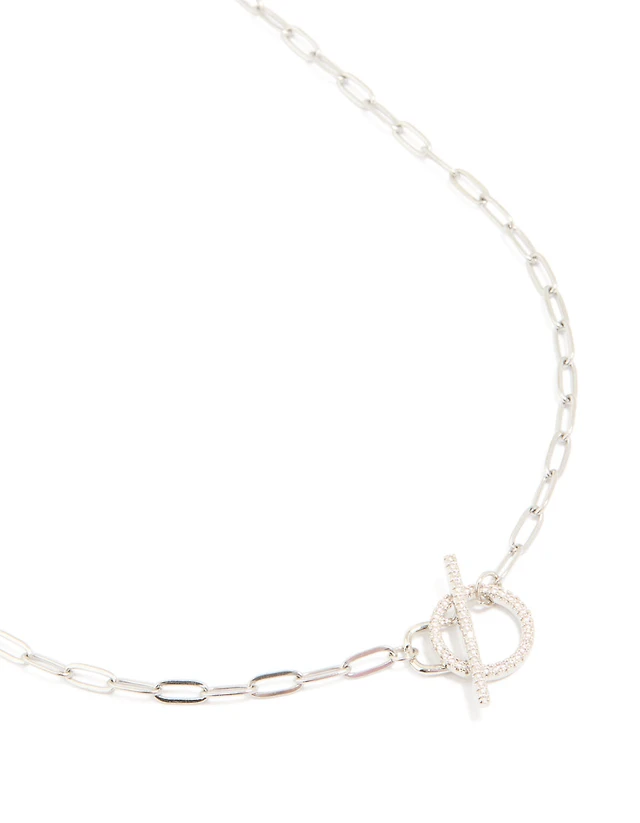 Silver Cubic Zirconia Double Layer Pear Stone Necklace