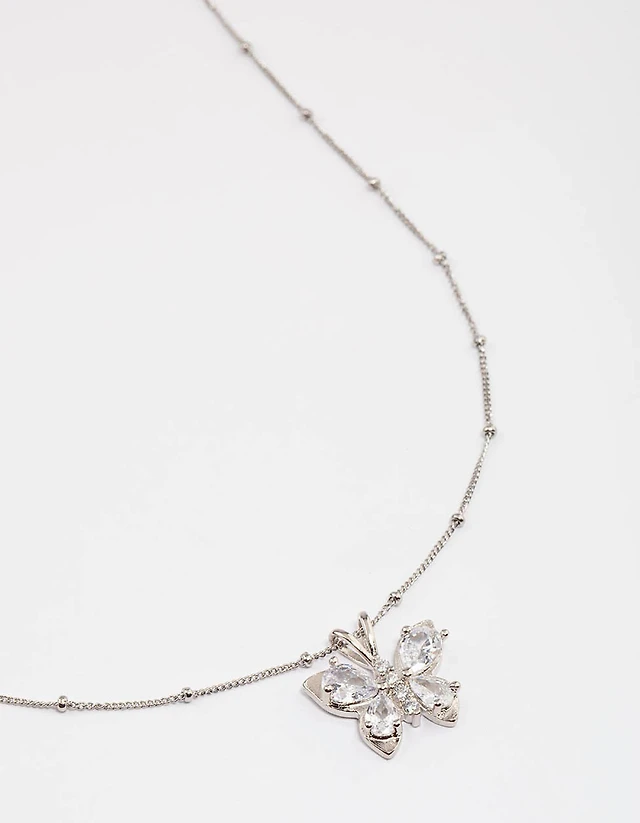 Waterproof Stainless Steel Cubic Zirconia Butterfly Necklace