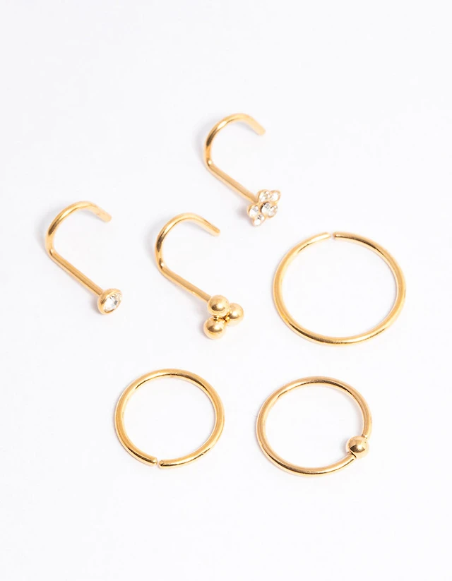 Gold Plated Titanium Ring & Hook Nose 6-Pack