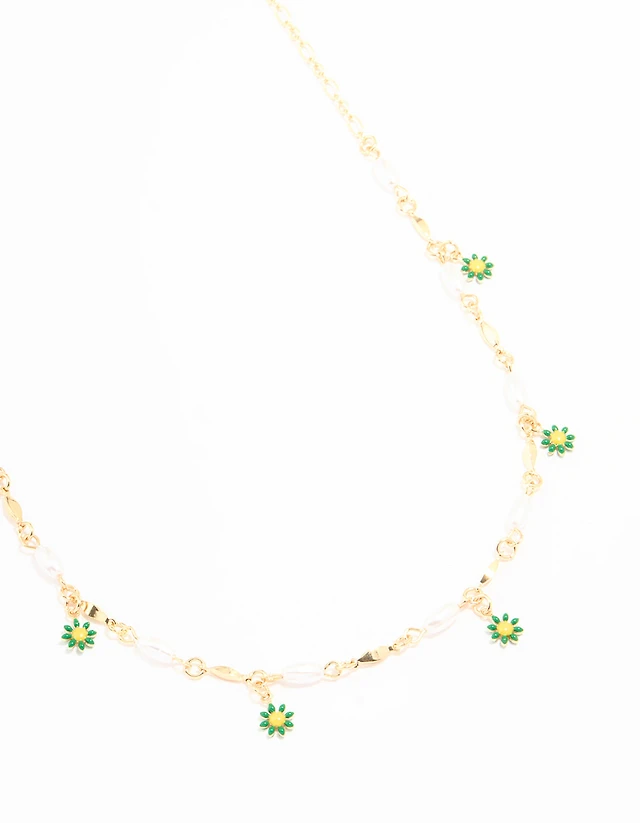 Brown Pearlised Flower & Pearl Hoop Earrings