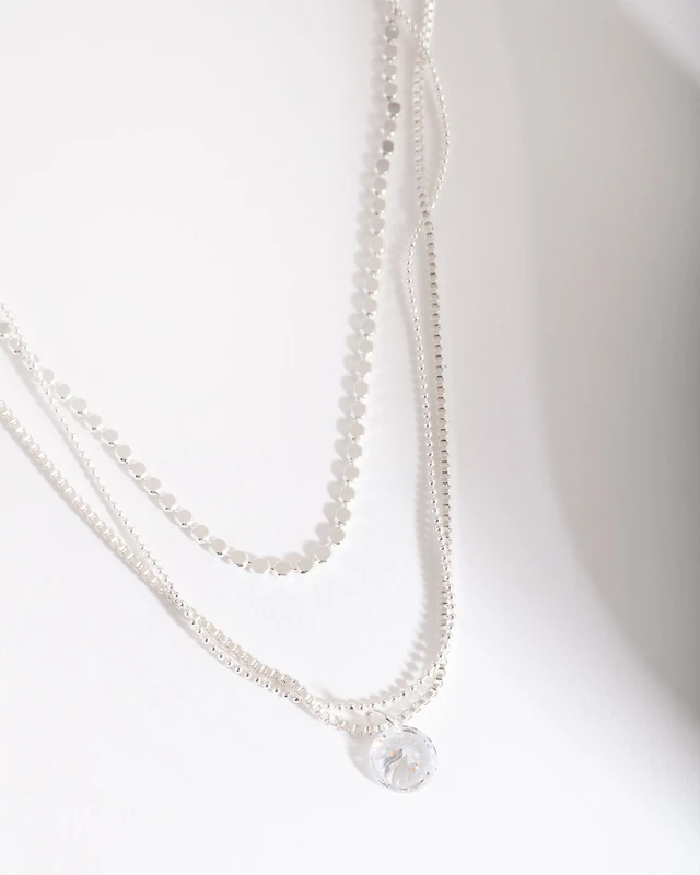 Silver Layered Cubic Zirconia Necklace