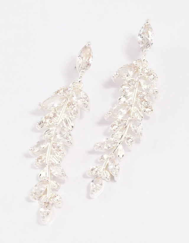 Silver Plated Cubic Zirconia Fern Drop Earrings