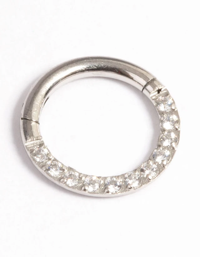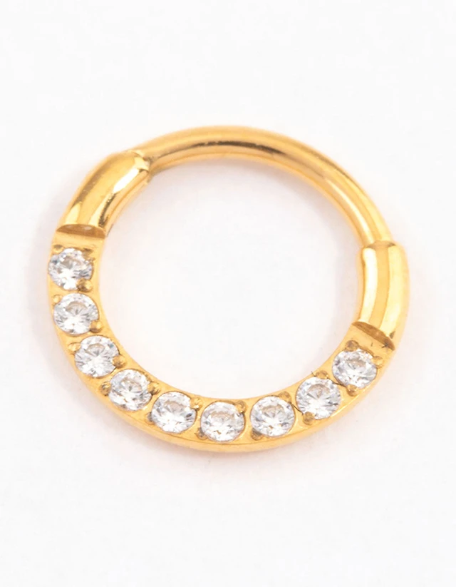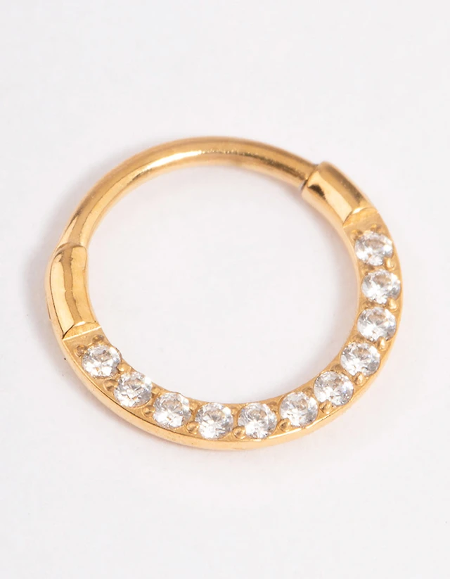 Gold Plated Surgical Steel Fine Pave Band Clicker Ring