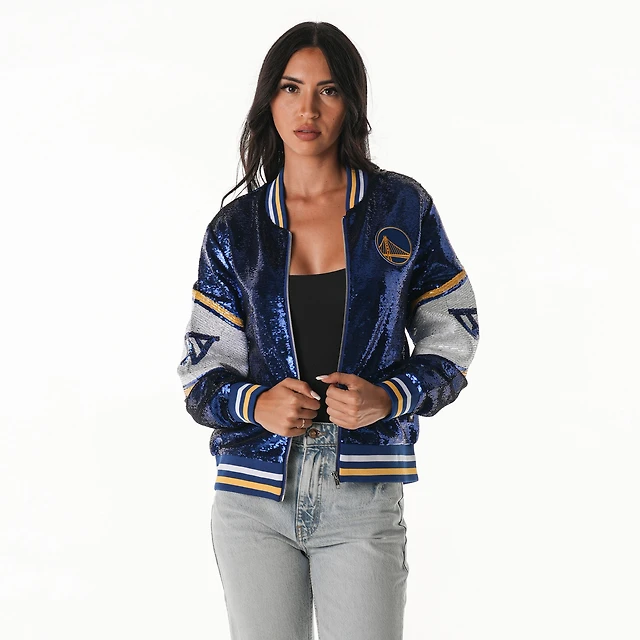 Unisex The Wild Collective Blue New York Knicks Sequin Bomber Full-Zip Jacket