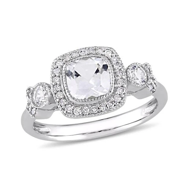Julianna B 14K White Gold Blue Sapphire, White Sapphire & Diamond Ring