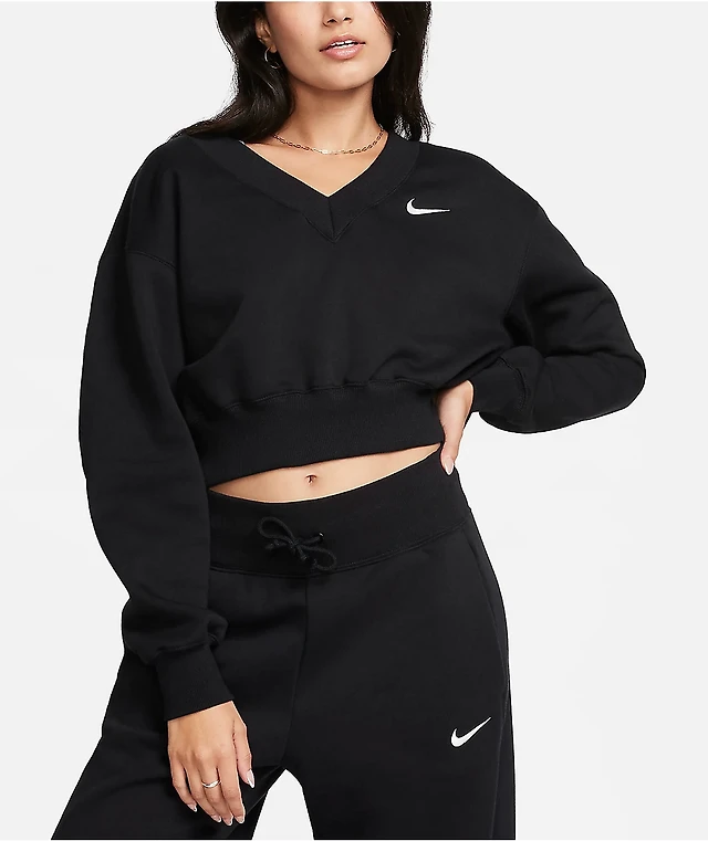 Nike Sportswear Phoenix Fleece Black Crop V-Neck Sweatshirt