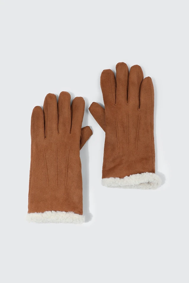 Ardene Faux Sheepskin Gloves in Cognac | Polyester