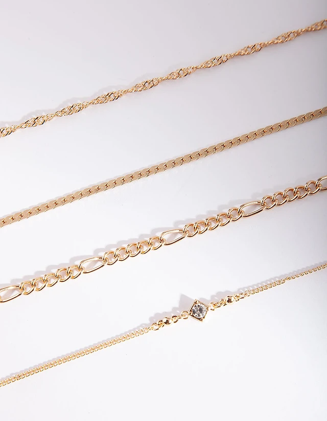 Gold Diamante Bracelet & Anklet 4-Pack Set