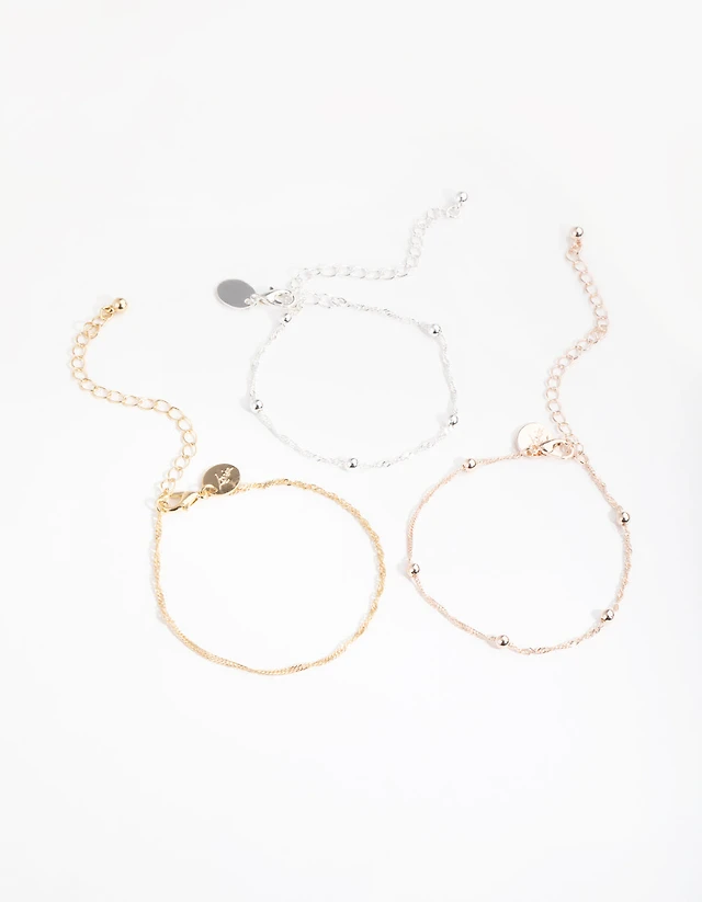 Silver Diamante & Faux Pearl 4-Pack Bracelets