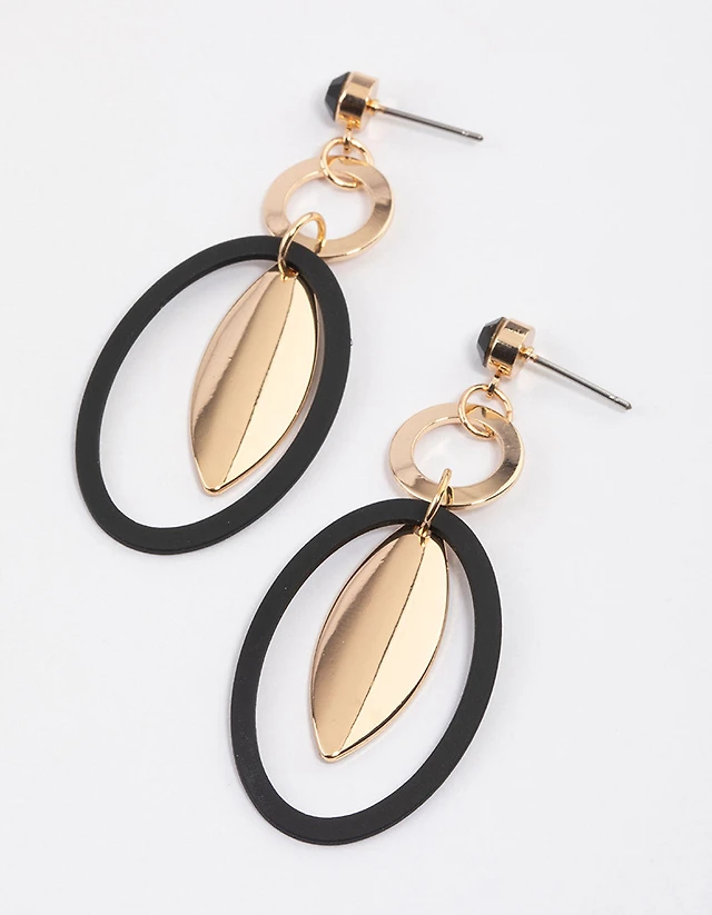 Gold Brown Acrylic Doorknocker Drop Earrings