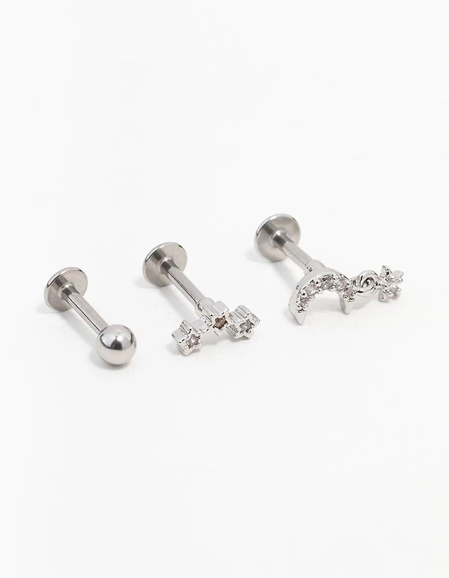 Surgical Steel Cubic Zirconia Multi Shaped Threadless Flat Back Studs Pack