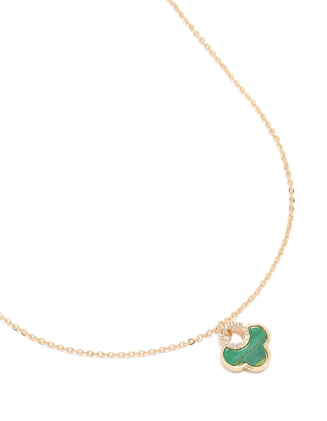 Gold Lovely Green Flower Petal Necklace