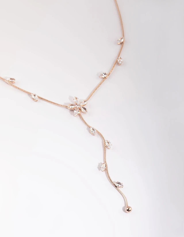 Rose Gold Cubic Zirconia Flower Vine Necklace