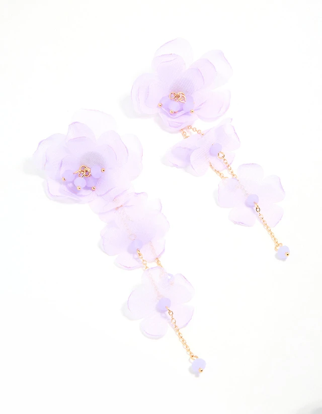 Gold Lilac Pearlised Flower Vine Drop Earrings
