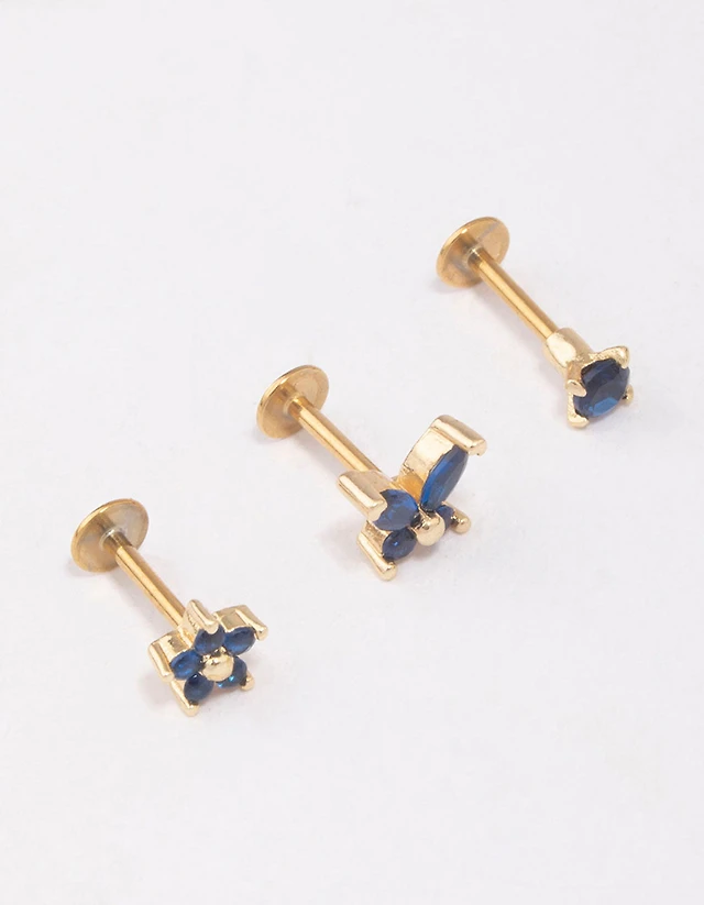 Gold Plated Surgical Steel Butterfly & Flower Flat Back 3-Pack