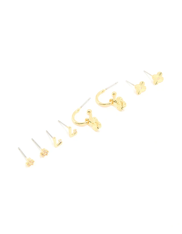 Fantas Eyes Heart & Flame 3 Pack Stud Earrings