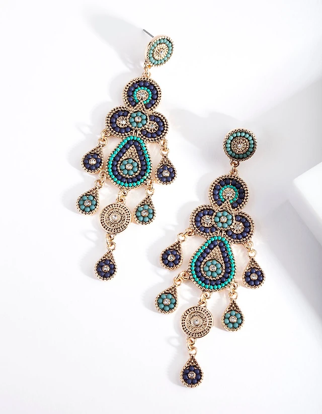 Gold & Blue Acrylic Disc & Circle Drop Earrings