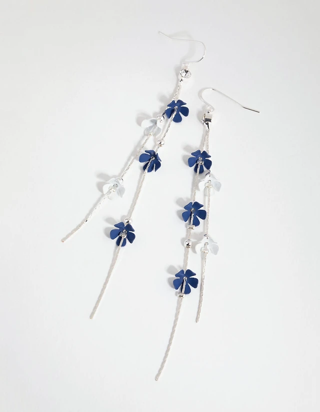 Navy Frosted Flower Drop Earrings