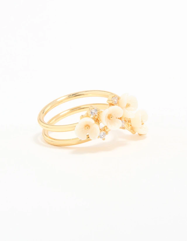 Gold Plated Cubic Zirconia Flower Wrap Ring