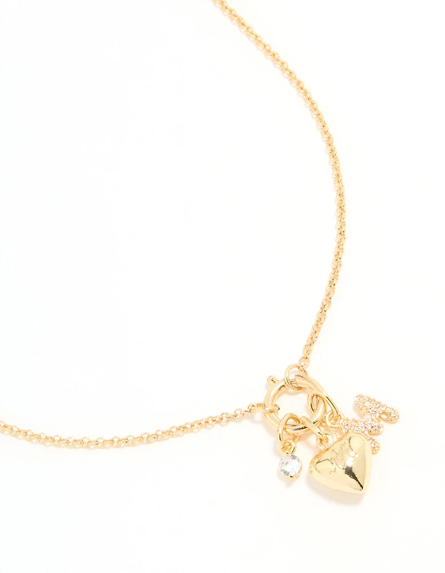 Waterproof Gold Plated Stainless Steel Mixed Shape Cubic Zirconia Trio Necklace