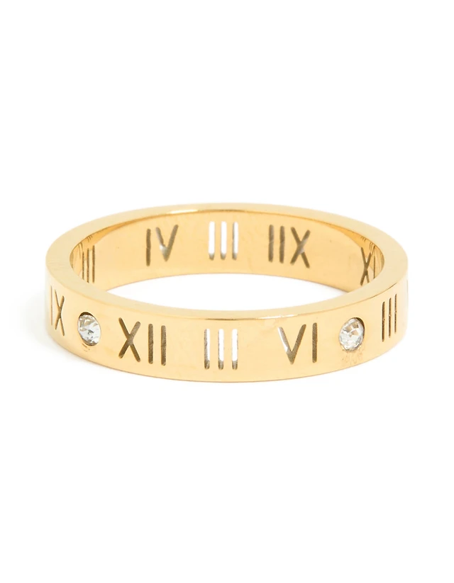 Waterproof Gold Plated Stainless Steel Cut Out Roman Numeral Ring