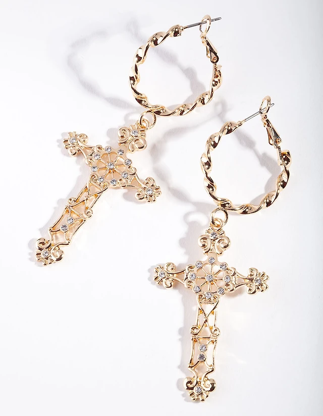 Gold Plated Rose Beaded Locket Cross Y-Necklace