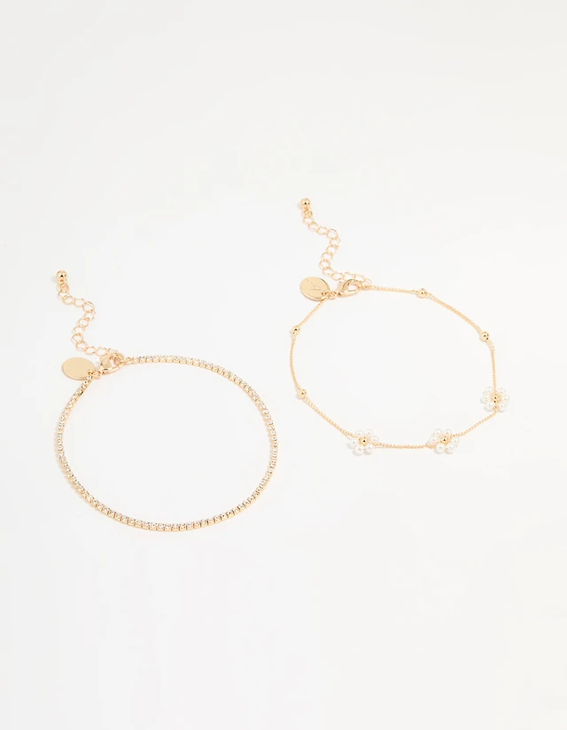 Mixed Metals Bow & Heart Bracelets 2-Pack