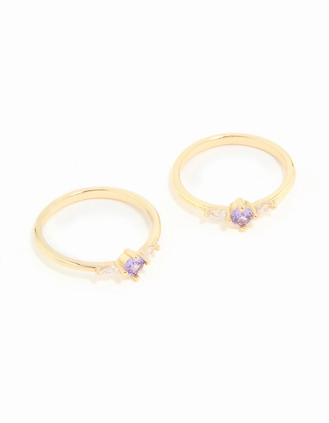 Gold Plated Purple Cubic Zirconia Dainty Trio Stacking Rings 2-Pack