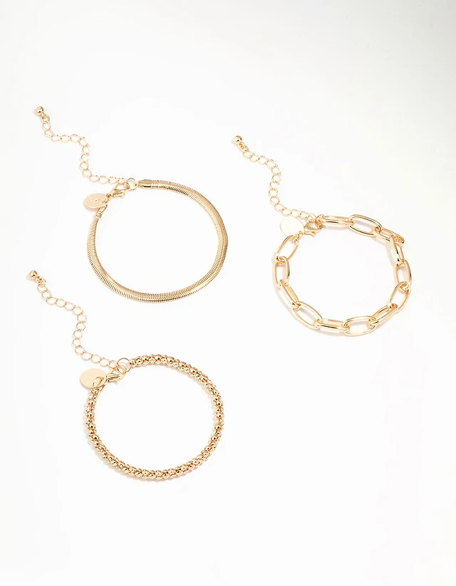 Gold & Acrylic Beaded Stretch Bracelets 3-Pack